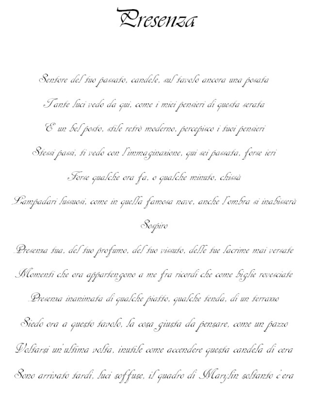Presenza Pubblicato il 15 aprile 2011 Condividi:Condivisione Fai clic per inviare un link a un amico via e-mail (Si apre in una nuova finestra) E-mail Fai clic qui per stampare (Si apre in una nuova finestra) Stampa PocketTweet Fai clic qui per condividere su Reddit (Si apre in una nuova finestra) Reddit Condividi su TumblrMi piace Caricamento... Correlati