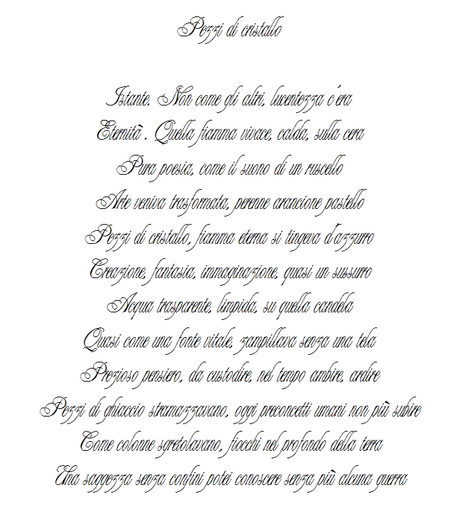 Pezzi di Cristallo Pubblicato il 23 Maggio 2011 Condividi:Condivisione Fai clic per inviare un link a un amico via e-mail (Si apre in una nuova finestra) E-mail Fai clic qui per stampare (Si apre in una nuova finestra) Stampa PocketTweet Fai clic qui per condividere su Reddit (Si apre in una nuova finestra) Reddit Condividi su TumblrMi piace Caricamento... Correlati