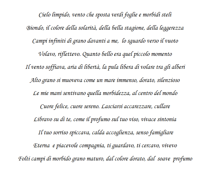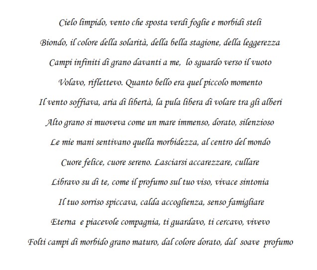 Inviato su Poetry on my Dreams | Contrassegnato da tag Campi di grano, dorato, eterna, Grano, libertà, poesia, pula, sorriso | 2 commenti |