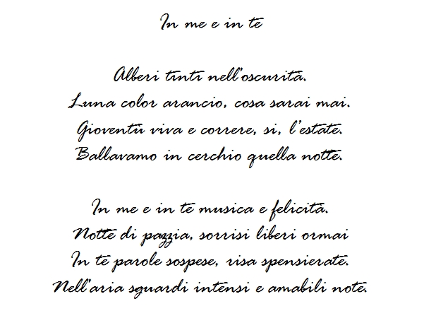In me e in te Pubblicato il 18 luglio 2011 Condividi:Condivisione Fai clic per inviare un link a un amico via e-mail (Si apre in una nuova finestra) E-mail Fai clic qui per stampare (Si apre in una nuova finestra) Stampa PocketTweet Fai clic qui per condividere su Reddit (Si apre in una nuova finestra) Reddit Condividi su TumblrMi piace Caricamento... Correlati