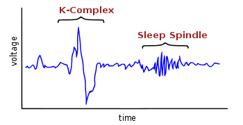 I complessi K (anch’esso in figura) avvengono solitamente nella seconda fase NREM e assolvono almeno due funzioni: la soppressione dell’eccitazione corticale in risposta a stimoli che il cervello addormentato non ritiene debbano essere valutati come pericolosi, e favorisce il consolidamento della memoria basata sul sonno.